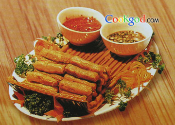 此菜选料广泛,突出鱼羊鲜的传统,用现代工艺及调味方法加以升华,一菜两吃,风味独特。