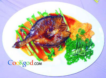 黄鱼鲞(xiang)一条,芥兰150克。调料蚝油5克,鲍鱼酱10克,料酒5克,酱油5克,白糖40克,味精5克,鸡精5克,辣椒油5克,生粉5克,胖头鱼肉熬的汤300克。