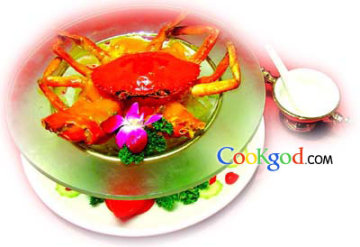 老南瓜100克,三门产的膏蟹1只(可用肉质肥嫩的其他蟹类代替)。调料味精5克,生粉10克,盐5克,色拉油1000克。