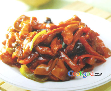 4、第四步的汁一定要事先调制好,在锅里调汁,否则容易把肉炒老了。烧烤酱可以增加独特的风味,让你做的这道菜与众不同哦!