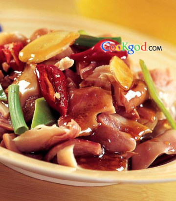 色泽鲜艳,微辣爽口一定要先用高压锅将猪肚压透,否则不易炒烂。