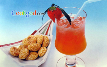 配方:乌梅汁1/3盎司,金酒1/4盎司,柳橙汁1盎司,凤梨汁1盎司,鲜牛奶1盎司,糖水1盎司,冰块1杯