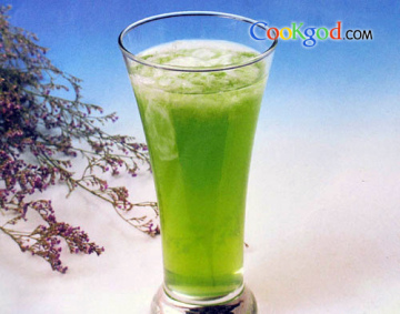 倒入椰浆后,不宜搅拌,令其漂浮在青苹果汁上。