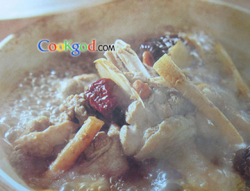 功效:鸭肉可以滋阴降火,而党参和红枣,枸杞则补气,补血.因而此药膳汤温而不燥, 滋而不腻.有很好的驱寒效果.如果想省去另外煮饭炒菜的麻烦,可以在汤快煮好的时候,另用一个锅烧开水,把粉丝或面线之类烫熟捞出,放在汤碗中备用,等汤调好味的时候,就马上倒入碗中.一碗香喷喷的鸭汤面也就大功告成了. 正宗的姜母鸭用的药材与上面所用的有些出入,自己只选了些常用的.
