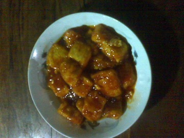 浓浆豆腐1块,玉米淀粉,番茄酱(甜辣酱),食用油。盐少许,白醋,糖,鸡精(按个人爱好所定)