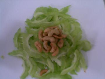 腰果10克,苦瓜一根,蒜2半,麻油1克。