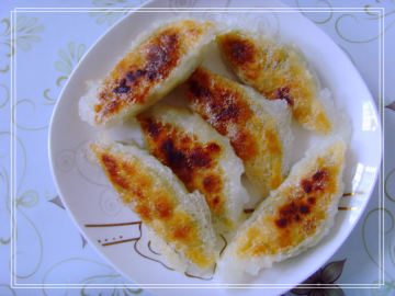 8:底锅烧热抹花生油,放入锅贴煎两分钟