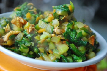 家庭版大盘鸡、糖醋小丸子、醋熘木耳白菜。