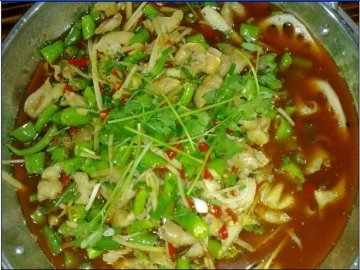 肥肠、尖椒、嫩江、小米辣、姜、蒜、豆瓣、八角、大料