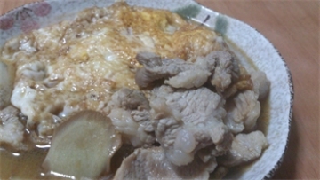 1. 老薑、梅花肉皆洗淨切片,雞蛋用麻油煎成荷包蛋備用。