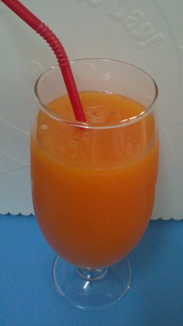 2.所有材料放入果汁机打匀,滤渣,倒入杯中.