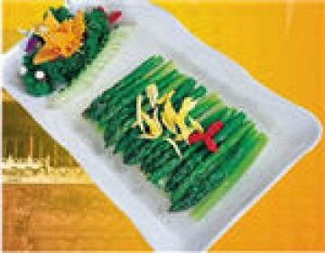 做法: 1、 鲜芦笋切去老皮切成长条或短条,放入沸水中的灼至转绿捞出,用清水浸冷,取出控干水分;