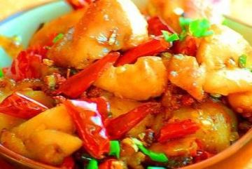 4. 炸制辣椒花椒时的油温要控制好,即要炸出香味,又不要炸糊,影响成品菜的色泽。