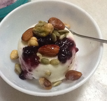 6、建议享用时加些烤香了的坚果如杏仁粒、臻果、南瓜籽等等, 是个营养丰富的甜点喔!