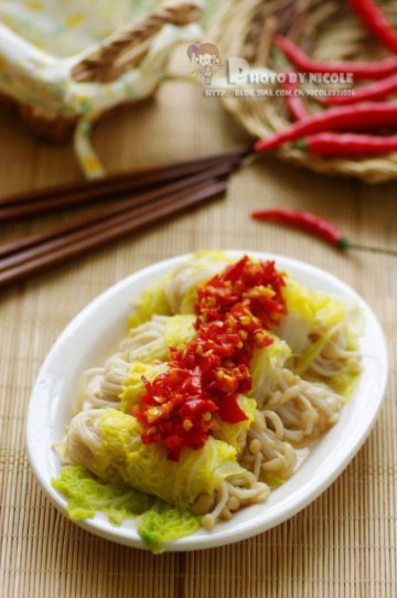 第三种:美食美味的剁椒金针菇菜卷做法