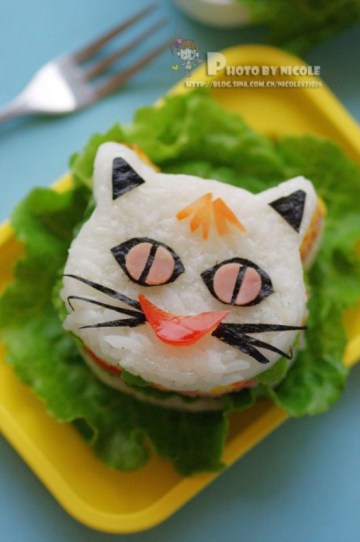 第三种:美食美味的可爱白猫童趣米汉堡做法