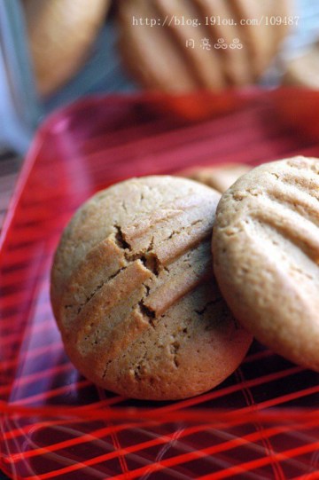 黄油120g,红糖120g,低粉270g,可可粉30g,小苏打2g,全蛋90g(2个),花生100g