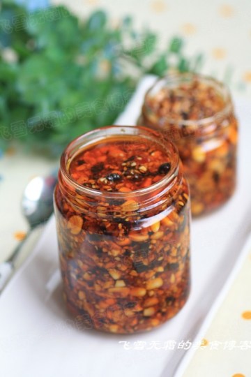 花生米100克,蒜蓉香辣酱50克,豆豉30克,芝麻30克