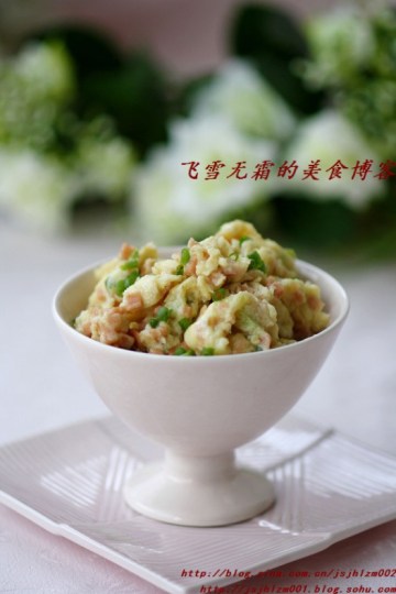 3.火腿切成末也到入碗中