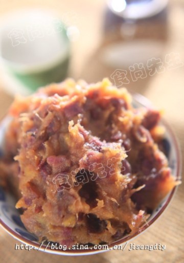 1)地瓜洗净,放入锅中加水,煮至可以令筷子插入为止。