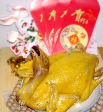 1.走地鸡请档主宰好,回来在鸡腹下切一刀,掏出内脏,清洗干净,把鸡脚屈曲塞进鸡肚里,鸡翅反翘起来,沥干水分
