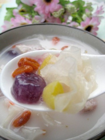 木薯淀粉,香芋,紫薯,银耳,枸杞,白果,芋圆,薯圆,椰浆,冰糖