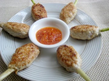 5.鸡肉馅沾在香茅上