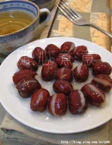 1、红枣用刀割开一侧,将籽取出。