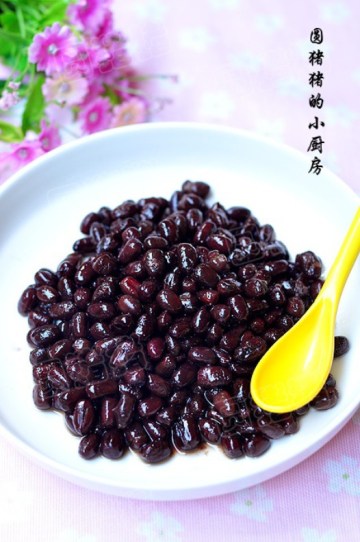 6.这时将豆子盛出来,可以直接尝尝味道,已经很甜了。觉得不够甜的,再加些蜂蜜进去拌匀,放凉后就可以直接用。或者是放入冰箱冷藏过夜,等豆子吸收蜂蜜的甜味