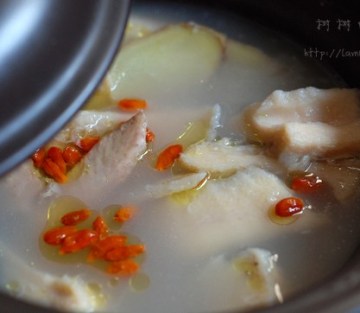 4、枸杞子最后十分钟加。汤好后放盐调味即可饮用。