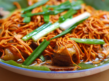 第一种:美食美味的鲜荷叶虫草花蒸鸡做法