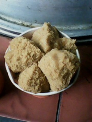 粘米粉1斤,泡打粉半包(就是小小一包的那种),黄糖半斤,水9两(就是差不多1斤)