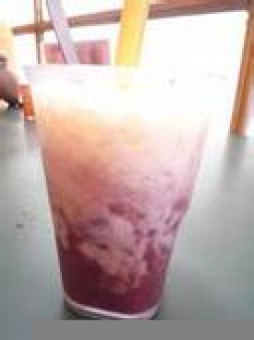 用勺子把冰扎碎,把蜂蜜倒入水果汁里搅拌,再把冰倒入!即可!加上雪糕更好吃哦!