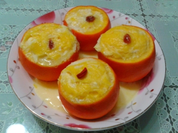 2、鸡蛋液往橙子里面倒时,不要倒太满,否则,容易漫出来;