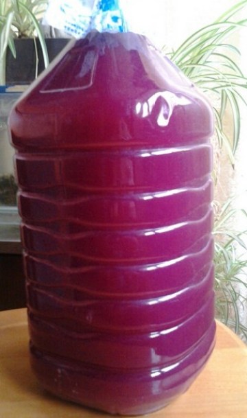 7.把过滤好的葡萄酒装进一个瓶子里,盖上盖子。在此期间葡萄酒还会继续发酵,所以绝对不能把葡萄酒装进玻璃瓶子里,否则会发酵产生的气体会让玻璃瓶爆炸,要把葡萄酒放进塑料瓶子里,而且每天都要定时打开盖子把发酵产生的气体放出来。