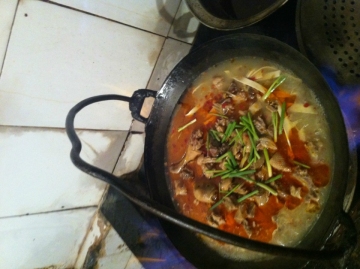 吊锅公鸡蛋牛鞭、蒸花朒、吊锅野鸭、吊锅腊鸡、拔丝土豆