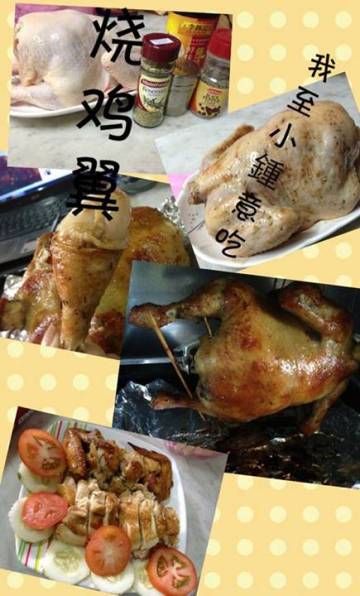 2、要烤的时候在鸡身上抹一些食油油(这样皮才会烤得漂亮)。我用200度烤35分钟。