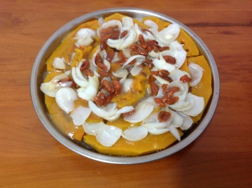 日本南瓜半个,红枣10颗,百合若干,冰糖