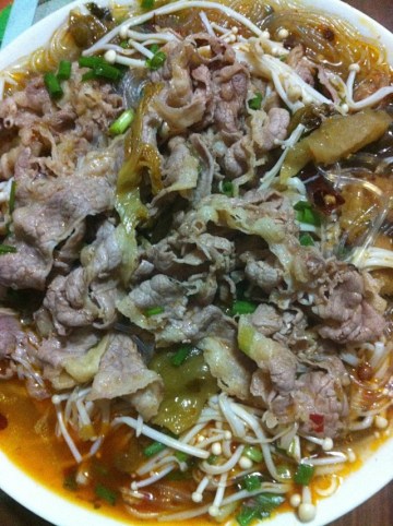 第一种:美食美味的酸菜金针菇煲肥牛做法