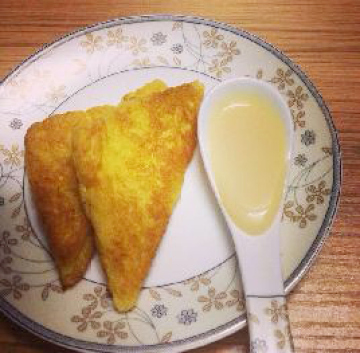 方块面包1块,鸡蛋1个,炼奶少许
