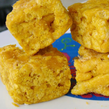 8、待核桃沙琪玛晾凉后取出切件,即可食用。
