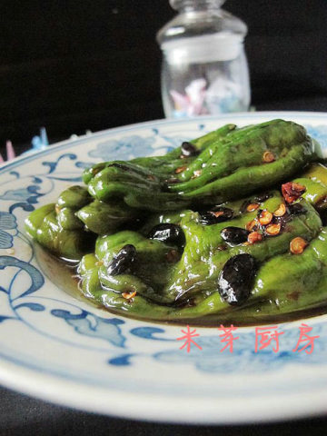 薄皮青椒400克,豆豉10克,蒜2瓣,老抽15克,盐少许,鸡精少许