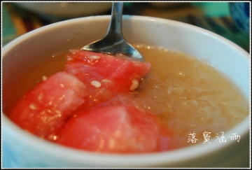 7、也可将瓜囊掏好,直接将银耳汤倒入麒麟瓜内,那色泽就如天边的霞红。