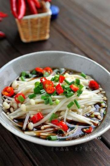 金针菇,小红椒,葱,生抽,白糖,盐,食用油