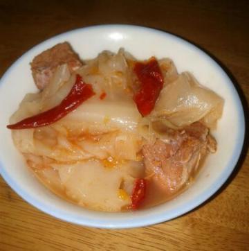 包菜,姜片,辣椒干,大茴,亚三皮,咸烧肉或烧猪脚