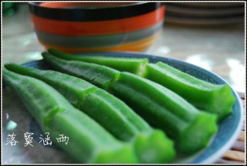 2、涝后再切掉秋葵的头,然后一切两,放在盘子里。整根秋葵水涝,里面的粘液完全没有被破坏,口味非常清纯,蘸着酱油,那叫个儿清爽,那种纯粹的秋葵香真,是的是i好喜欢。度娘说,秋葵性凉,所以蘸酱油的时候,最好可以放点蒜或者姜,综合一下可以暖胃。