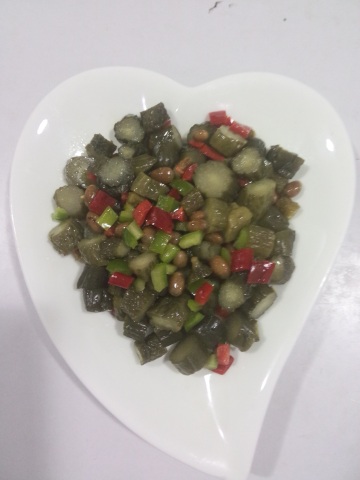 3 把酱黄瓜,青红椒,炒黄豆加盐鸡精白糖拌好