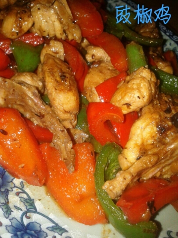 鸡半只,青红甜椒各1个,豆豉和豆瓣酱各半汤匙(切幼),姜茸1茶匙,蒜茸半茶匙,绍兴酒、糖和蚝油适量
