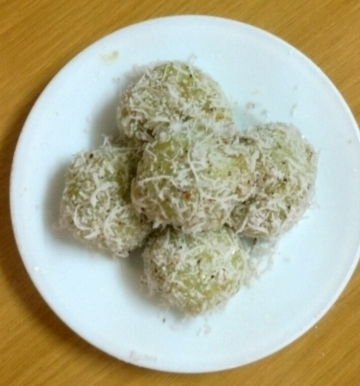 7、最后沾上椰丝在糯米团的外皮就完成了。