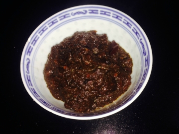 橘子皮3-4个(新鲜橘皮与晒干橘皮都行),甜面酱(与橘皮的量差不多就行),黄豆酱(看酱的咸度来放),辣椒粉(看个人喜好,不放也行),干豆豉1-2匙,食用油3大匙,白糖若干